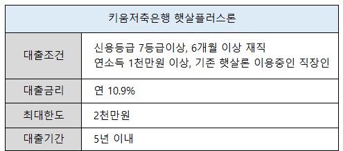 키움저축은행 햇살플러스론 신용회복대출 조건