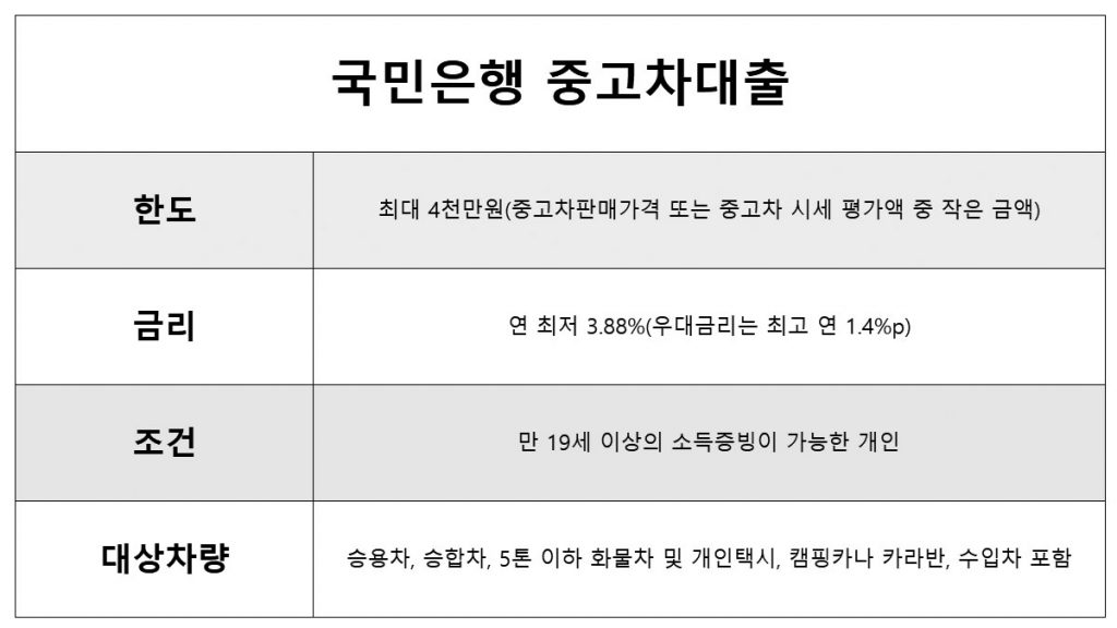 | KB캐피탈 다이렉트 중고차대출 한도 및 금리 | |